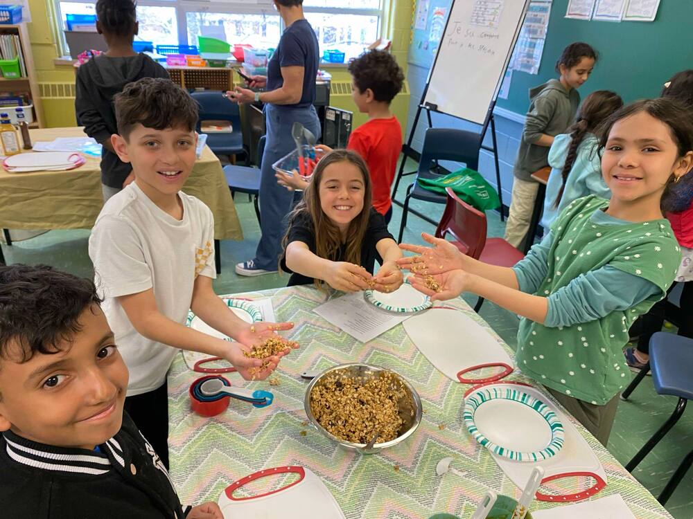 Wraps colorés, boules d'énergie, brochettes de fruits, salade verte et plus encore! Les élèves ont tous mis la main à la pâte pour créer ce festin qu'ils ont ensuite pu déguster pour leur dîner. Ils ont donc pu apprendre à utiliser divers ustensiles de cuisine et suivre une recette, en plus de goûter à de nouveaux aliments.